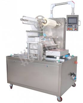 - Термоформовочные машины серии HVR. Используются для упаковки продукции в лотки, полностью сформированные из термосвариваемых пленок – и верхняя, и нижняя часть. Линейка включает несколько моделей под различные габариты упаковки: HVR-320А, HVR-420А, HVR-520А. Машины полностью в автоматическом режиме выполняют такие опции как: формование из пленки лотков (из нижней и верхней пленок), вакуумирование, газонаполнение, запайка, разрезание упаковки. Опционно возможно дооснащение термопринтером для печати информации на упаковке, формирователем язычка для легкого вскрытия лотка, этикетировщиком и пр. Подача продукта может осуществляться как вручную, так и автоматически. Машины серии могут использоваться для упаковки самой разнообразной продукции, включая мясные и рыбные деликатесы, копчености, сыры, свежие фрукты и овощи, сухофрукты и многое другое. Несмотря на высокотехнологичную конструкцию, они довольно неприхотливы в эксплуатации и могут работать с самыми различными видами упаковочных материалов. Более того – даже незначительное несовпадение размеров пленки (пленка шире, чем нужно) не мешает ее использованию, достаточно немного сдвинуть пленку.