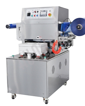 - Автоматические конвейерные запайщики. Это высокопроизводительное оборудование предназначено для упаковки продукции в уже готовые индивидуальные лотки из термосвариваемых материалов. Данный вид упаковки широко распространен в пищевом производстве. В такие лотки уже традиционно упаковывают свежую и замороженную птицу, колбасные изделия, рыбу, продукцию собственного производства торговых сетей, различные полуфабрикаты и прочее. Запайщики данного типа представлены моделями серии HVT, в линейке имеются модели с функциями вакуумизации и газонаполнения. Вакуумная и газомодифицированная среда существенно продлевает сроки хранения продуктов, дольше сохраняет их свежесть, защищает от неблагоприятных внешних факторов в процессе хранения и транспортировки. Одновременная упаковка двух лотков (как, например, в модели HVT-450F/2) существенно ускоряет процесс упаковки - пока оператор загружает одну матрицу, во второй завершается предыдущий цикл упаковки. Запайщики данной серии достаточно универсальны и могут применяться для упаковки продукции в готовые лотки или контейнеры из различных термосвариваемых материалов. Они оснащены современным электронным управлением с цветной панелью и удобным, интуитивно понятным интерфейсом. Оператор может установить различные режимы работы: запайка, запайка/вакуумизация, запайка/вакуумизация/газонаполнение. Опционально по запросу клиента возможно оснащение аппарата вакуумным насосом с большей производительностью, датером, опцией easy-open – для легкого открывания лотка и другими.