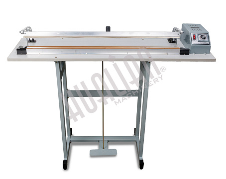 - Запайщик для пакетов. Обычно выбирается ручная, настольная или ножная модель. Первые более компактные, занимают мало места, справляются не с очень крупными пакетами. Ножной же управляется педалью, подойдет для упаковки крупных товаров.