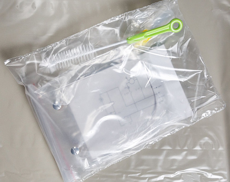- Подача пленки: Рулон пузырчатой пленки размещается рядом на стойке или просто на столе.