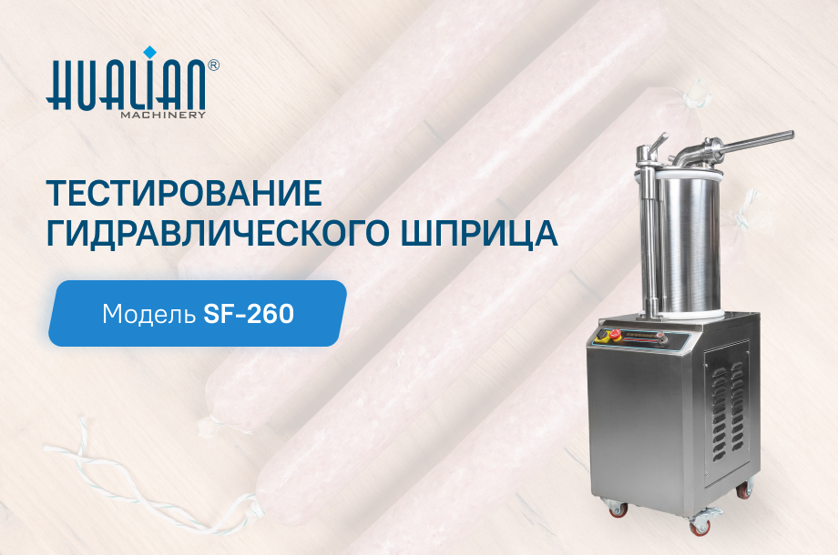 Компания «Hualian Machinery» продолжает знакомить своих клиентов с возможностями современного оборудования для пищевой промышленности. На этой неделе в нашем демозале прошло тестирование популярной модели — гидравлического колбасного шприца SF-260. Целью мероприятия была наглядная демонстрация его работы и преимуществ для потенциальных заказчиков.