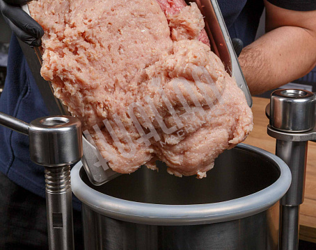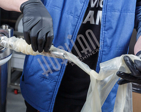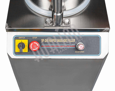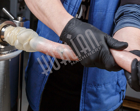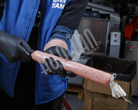 В ходе тестирования специалисты наглядно показали, как оборудование справляется с набивкой оболочек фаршем для колбасы. Процесс подтвердил все заявленные характеристики модели. SF-260 предназначен для работы с различными видами фарша – мясным, куриным, рыбным, сырным, мясоовощным, паштетом и другими.