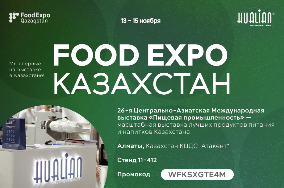 Уважаемые партнеры и покупатели, делимся важной для нас новостью. Hualian Machinery впервые примет участие в международной выставке в Казахстане! 13-15 ноября мы будем участвовать в 26й Центрально-Азиатской Международной выставке «Пищевая промышленность» (FoodExpo Qazaqstan).