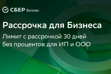 Для клиентов нашей компании СберБизнес согласовал уникальные условия предоставления рассрочки для юридических лиц: онлайн-покупки для бизнеса в рассрочку от 100.000 до 3 млн рублей!