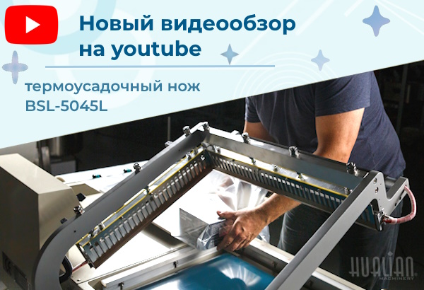 В новом видеообзоре – новинка среди термоусадочных машин: усовершенствованная модификация ножа для запайки и обрезки PE плёнки - BSL-5045L.