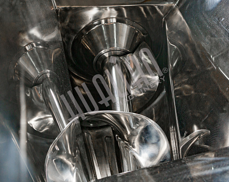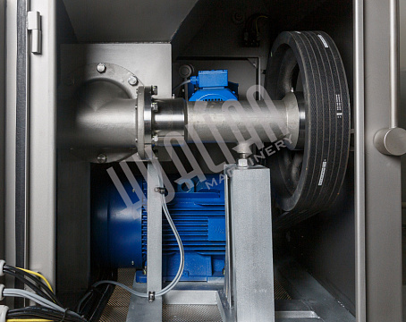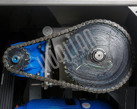 Аппарат оснащен цепным приводом ведомого вала шнека-ворошителя, поэтому оборудование может работать с температурой сырья от 0 до -18 градусов. При выходе
