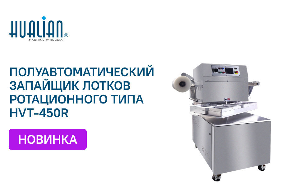 Обзор полуавтоматического ротационного запайщика лотков с функцией газонаполнения и вакуумирования HVT-450R.