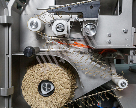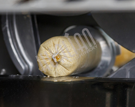 Данный аппарат является автоматическим и двухскрепочным. Обычно он “встраивается” в цепочку оборудования после вакуумных шприцов, которые наполняют оболочку будущим продуктом. Машина также умеет накладывать петли. Они нужны при дальнейшем помещении изделия в термодымовую камеру.
