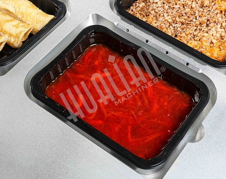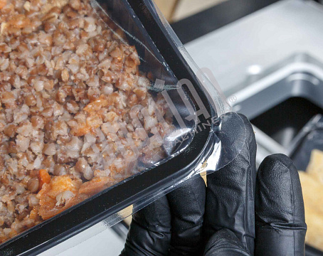 В ходе тестирования проверялась работа запайщика на готовых продуктах: гречке, супах, блинах и котлетах. Оборудование показало стабильную работу, обеспечивая герметичность и аккуратность упаковки.