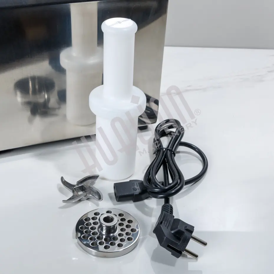 Модель предназначена для измельчения различных видов мяса, птицы, рыбы. Поставляется в комплекте с двумя решетками с отверстиями диаметром 8 и 5 мм, ножом, толкателем для мяса и приемным лотком.