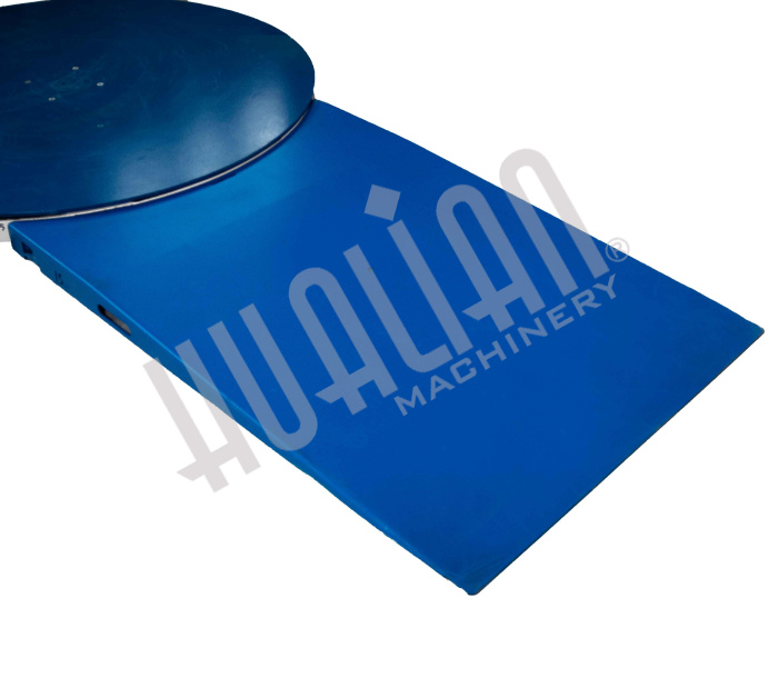 Поворотный стол приводится в движение цепной передачей с точным позиционированием паллета по окончании цикла обмотки.