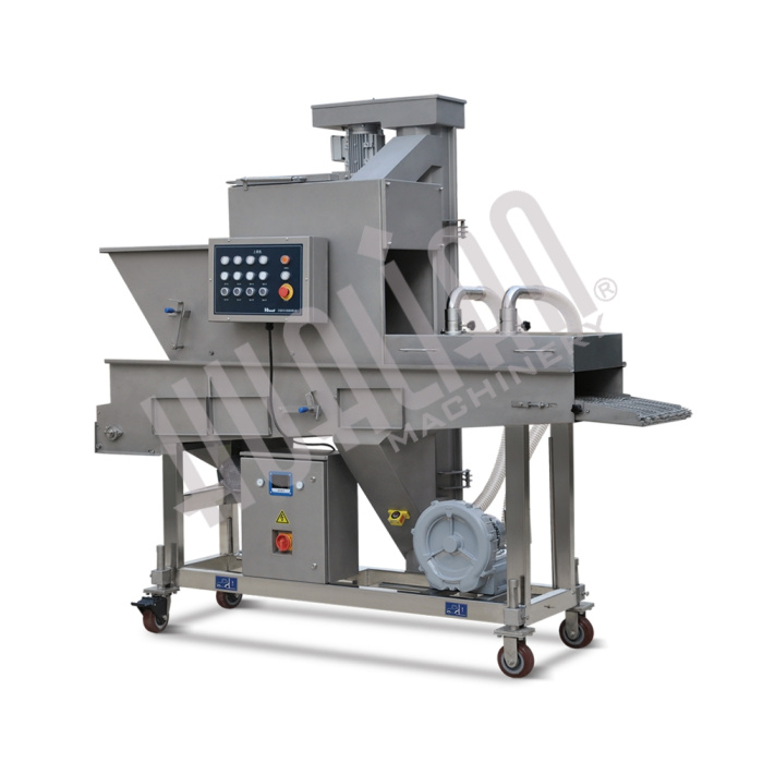 Процесс выхода продуктов из панировщика полностью автоматизирован.