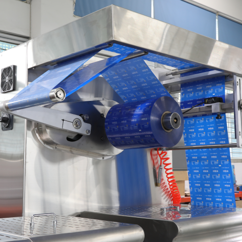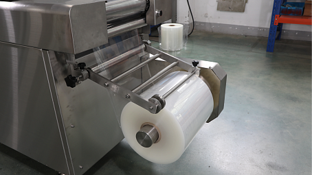 Ширина верхней и нижней плёнки подбирается в зависимости от размеров лотков. Узлы размотки также оснащены сервоприводом для обеспечения контроля скорости, это позволит задавать тот темп работы который необходим на производстве.