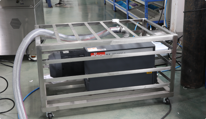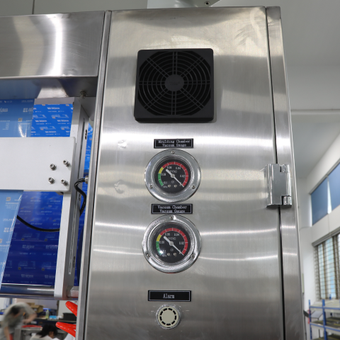 Электрический шкаф машины полностью изолирован и оснащён системой охлаждения, чтобы защитить электрические компоненты от перегрева. Также на корпусе шкафа располагаются вакуумметры для контроля степени вакуума в камере формирования плёнки и откачке воздуха из лотка.