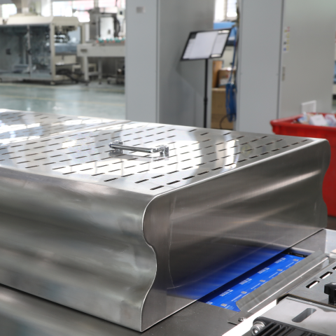 Корпус машины исполнен из нержавеющей стали. Узлы обрезки плёнки, термоформирования и запайки закрыты легкосъёмными панелями для обеспечения легкого доступа к элементам машины.