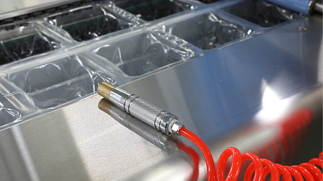 Фотодатчики для отслеживания фотометки на узлах размотки верхней и нижней плёнки позволяют наиболее точно производить обрезку нижней плёнки для формирования лотка и верхней плёнки для его запайки.