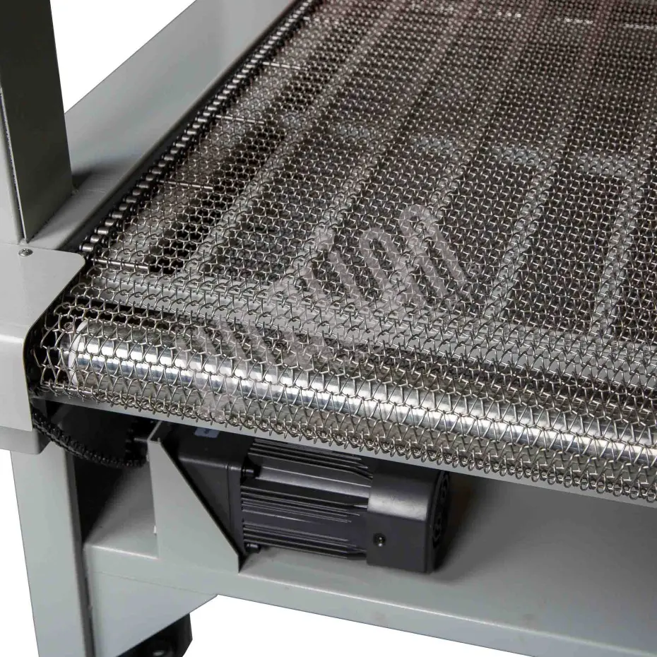 - Конвейер доступен в двух вариантах: сетка из нержавеющей стали или роликовый;
