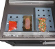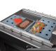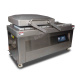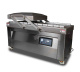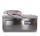 Вакуумные камеры и корпус выполнены полностью из нержавеющей стали марки SUS304. Установлен мощный насос промышленного типа мощностью 63 м³ /час (возможна комплектация немецким насосом BUSCH). Наличие двух рабочих камер и двух запаечных планок в каждой камере существенно ускоряет рабочий процесс — пока в одной камере идет заполнение вакуумом (газом) и запайка, в соседней оператор готовит к упаковке следующую партию продукта. Благодаря двойному flip-механизму перекидная крышка легко перемещается с одной камеры на другую. Опционально аппарат может быть дооснащен функцией автоматического закрытия крышки.