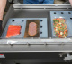 В стандартном исполнении вакуумник имеет по две запаечных планки, расположенные параллельно друг другу, каждпя длиной 720 мм, расстояние между ними 530 мм. Ширина запаечного шва – 10 мм. По желанию заказчика возможна установка опции запайки двойным тонким швом (3 мм), а также обрезкой.