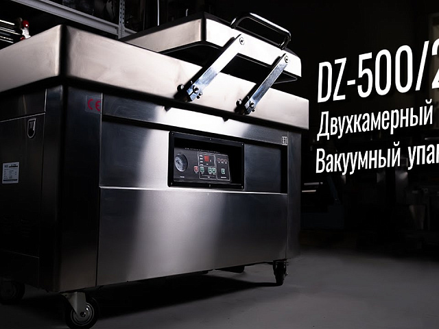 DZ-500/2SB SS – популярная модель серии бюджетных двухкамерных вакуум-упаковочных машин напольного типа.