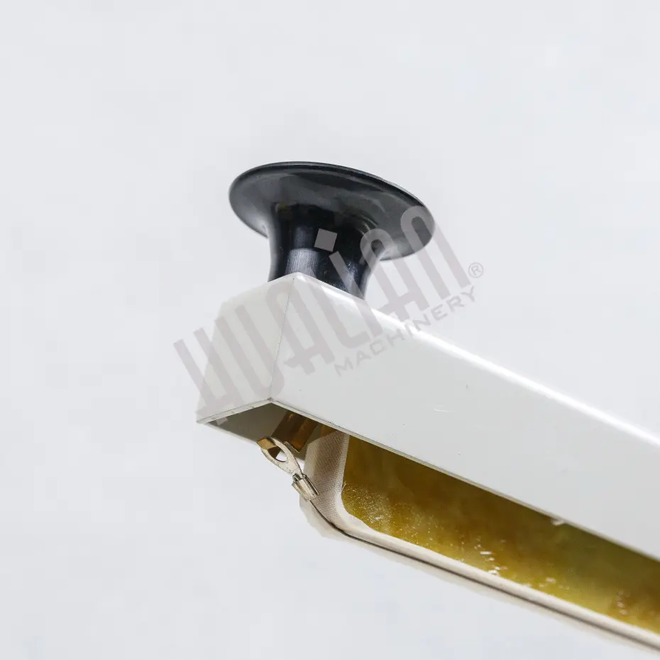 Модель SP 450 представляет серию ручных импульсных запайщиков с запаечным элементом типа «струна». Он одновременно выполняет функции запайки и обрезки. Толщина струны 0,5 мм. Максимальный размер пакета 450х450 мм. Импульсная технология запайки обеспечивает экономичное энергопотребление.