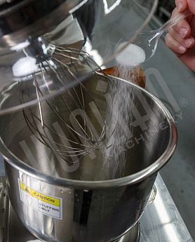 Для подготовки теста мы использовали планетарный миксер B7. Объема его дежи достаточно для одномоментного приготовления 7,5 литров теста.