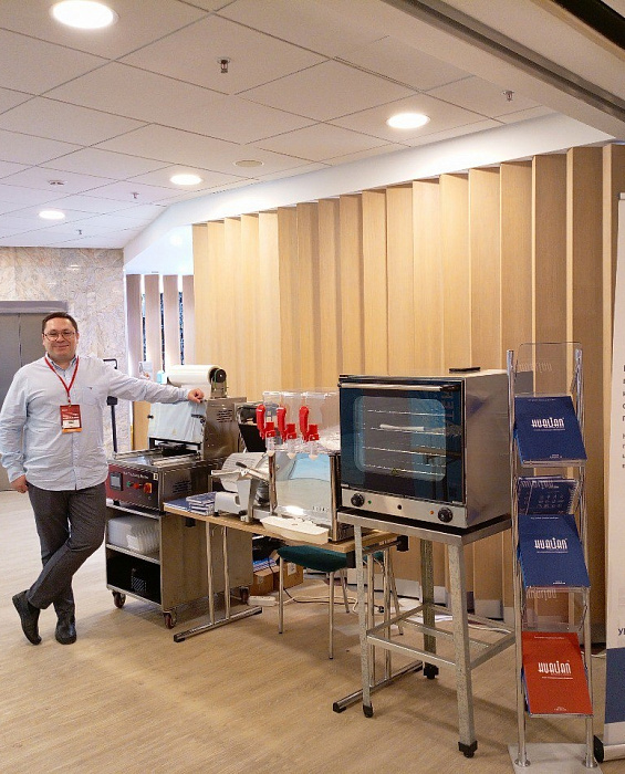 На форуме нас представлял эксперт по оборудованию Hualian Machinery Андрей Чурин. Он продемонстрировал упаковочное оборудование для фабрик-кухонь, ресторанов, заведений доставки еды. Наш специалист провел обзор на наши аппараты, рассказал о современных решениях нашего бренда, поделился лайфхаками по выбору оборудования на свое предприятие. Самое интересное, что несколько моделей можно было протестировать прямо на нашем стенде. Мы представляли запайщики лотков, слайсеры, сокоохладители и многое другое.
