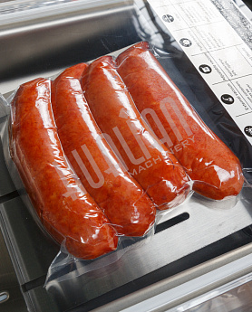 - Колбаса копчёная в нарезке: создание плотной упаковки с предотвращением высыхания и сохранением аромата. Вакуумная герметизация исключила попадание воздуха, что критично для деликатных продуктов;