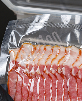 Бекон в нарезке: упаковщик эффективно удалил воздух. Тонкие ломтики не деформировались благодаря регулируемому уровню вакуума;