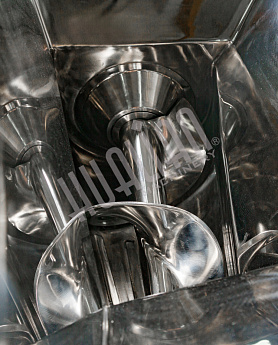 Аппарат оснащен цепным приводом ведомого вала шнека-ворошителя, поэтому оборудование может работать с температурой сырья от 0 до -18 градусов. При выходе