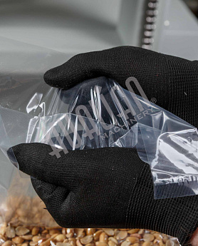 Первое, что хочется подчеркнуть – аппарат универсален. Он одинаково хорош как для пищевой, так и для химической, фармацевтической и прочих промышленностей. Именно поэтому для тестирования мы взяли два “продукта” из совершенно разных сред – стиральный порошок и орехи. Взяли мы их очень щедро, чтобы проверить, как промышленный вакуумный упаковщик справится с тяжелой ношей. Спойлер – результат отличный! Голова оборудование быстро регулируется по высоте, поэтому может работать с пакетами разного размера и веса.