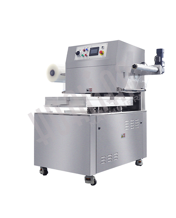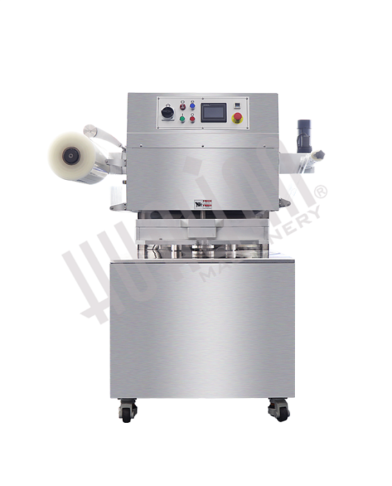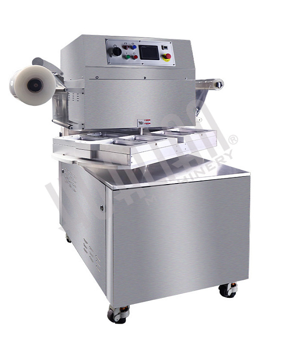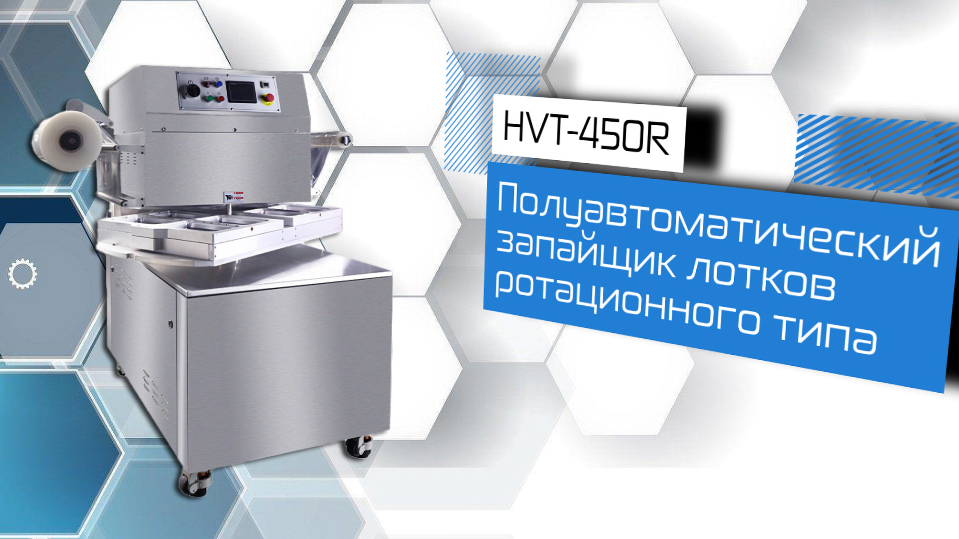 Обзор полуавтоматического ротационного запайщика лотков с функцией газонаполнения и вакуумирования HVT-450R.