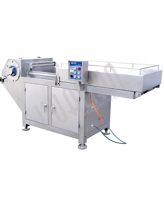 Оборудование позволяет нарезать мясо для дальнейшего производства колбас и сосисок, обеспечивая равномерную нарезку и высокую производительность.