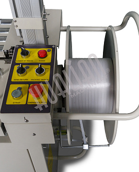 - Интуитивно понятное управление на базе PLC-контроллера. Можно настроить интервалы между рабочими циклами и повторно отправлять товары на обвязку (двойную) в автоматическом режиме.