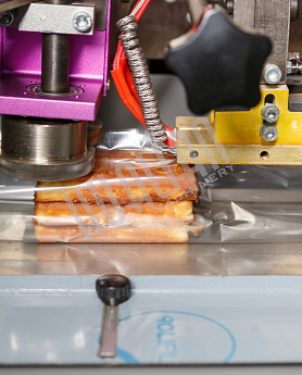 - Оборудование может создавать цветные флоу-пак пакеты – для этого оно имеет чувствительные фотодатчики, которые точно позиционируют пленку с фотометками.