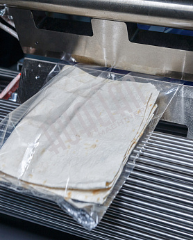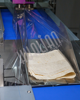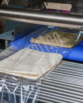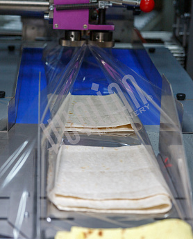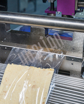 Данный упаковщик во флоупак-пакеты мы протестировали в нашем шоуруме. К нам обратился производитель хлебобулочных изделий. Перед нами встала задача подобрать оборудование для упаковки лаваша. Мы посоветовали DXDZ-600XD именно из-за большой ширины пленки. Оборудование впечатлило клиента – оно быстро упаковано все товары в надежные трехшовные пакеты. Рисунок на пленке нарушен не был. Дополнительно заказчик приобрел этикетировочную машину для наклейки этикетки с логотипом фирмы.