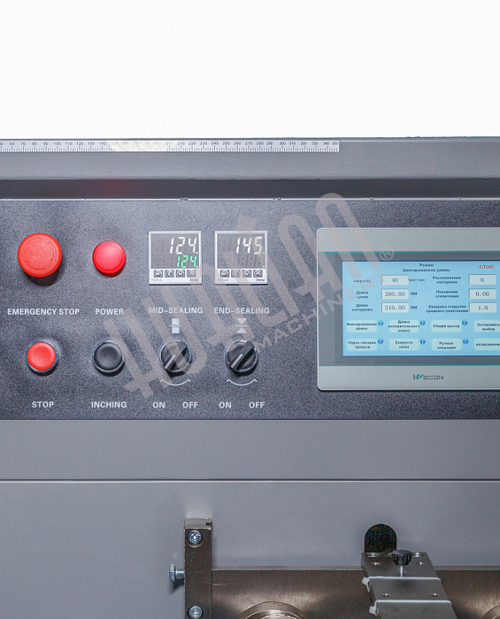 - Запайка и обрезка регулируется по длине пакета (через панель управления) или с помощью фотометки.