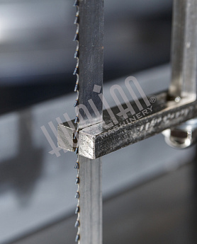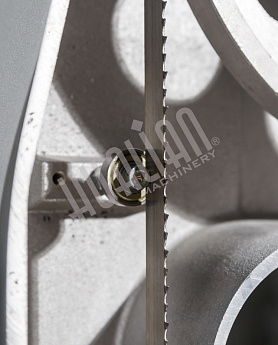 - Длина пильного полотна (гибкой длинной ленты с небольшими зубьями по краю) – 2000 мм. Вращается оно со скоростью 1420 об/мин. Максимальная высота пропила – 260 мм. Процесс нарезки проходит очень быстро.