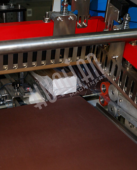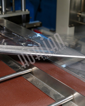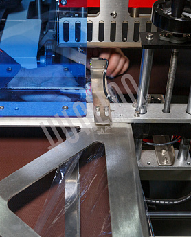 Нож для термоусадки сначала упаковывает товар (как штучно, так и группой), а после обрезает и закрепляет концы упаковки (излишки уходят на отдельную катушку). Автоматический аппарат практически не требует участия оператора – в его задачи входит только выкладка груза на станины и запуск работы. После упаковки товары перемещаются в термотоннель или на отводящий транспортер.