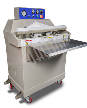 Этот вакуумный упаковщик серии DZ относится к оборудованию бескамерного типа, из-за чего почти не имеет ограничений по размеру товара, поэтому он подойдет почти для любой сферы бизнеса: пищевой промышленности, сортировочных центров, легкой промышленности и пр. При этом вакуумная упаковочная машина компактная – ее габариты 1045×930×1245 мм, вес 60 кг, поэтому подойдет аппарат и для небольших предприятий. Перемещается он без труда – снизу корпуса установлены поворотные колеса.